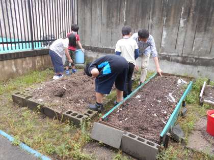 体を動かすだけでなく,植木鉢のお引越し,畑の草引きもしました。