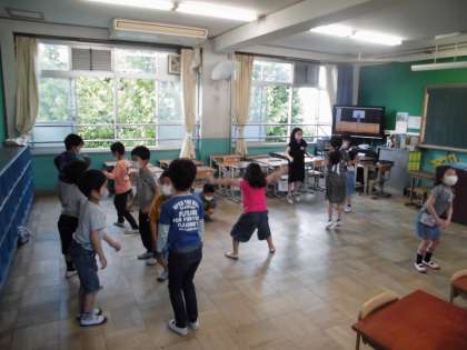 体でじゃんけんゲームをしたり,児童会の歌を歌ったりしました。久しぶりに,みんなと一緒に体を動かして楽しそうでした。