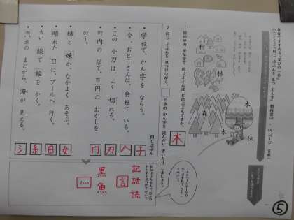 「同じぶぶんをもつかん字」きょうか書P58〜59