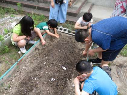 本日の登校日では先週みんなで種植えをしたたんぽぽ畑の様子を
