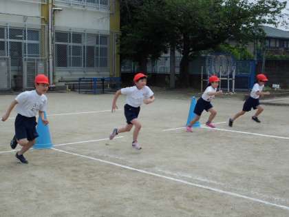学年で50m走のタイムを計りました。子ども達は,暑い中一生懸命に走っていました。「頑張って走ろう」「速くなった!」などの感想が聞こえてきました。