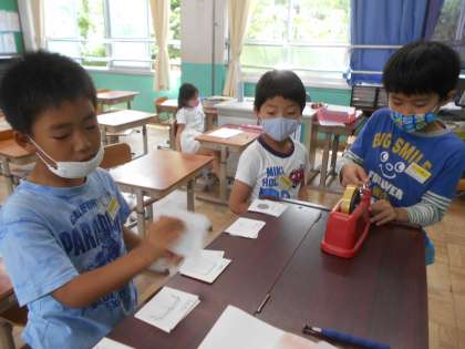 うんてい,ボールあそび,おにごっこ,なわとび,けん玉,てつぼうの中からすきな遊びを選び,黒板に貼りました。