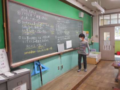 文字と式の学習の中では,表を用いて考える方法と計算で求める方法とが出てきました。学習問題に対してみんなで考えていくことで,自分にはなかった新しい考え方に出合えることも学校で学習する良さですね。