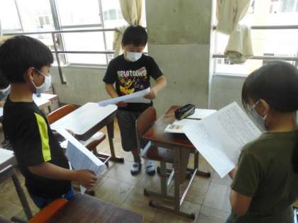 自分が選んだ問いについて考えたことを,友達と交流しました。
