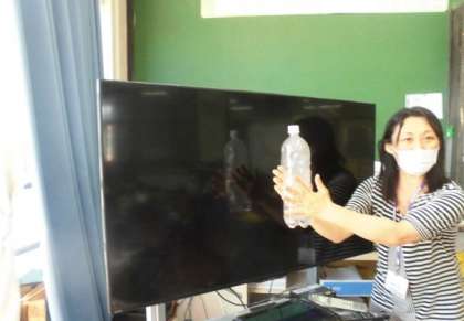 理科の松村先生が,ペットボトルを使って雲のでき方を説明してくださいました。