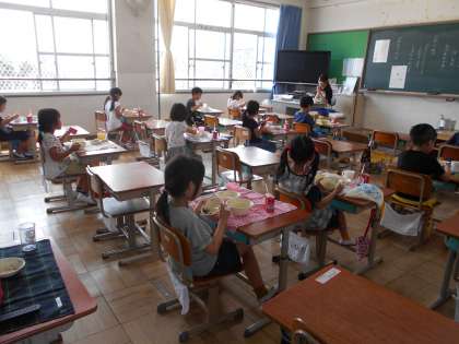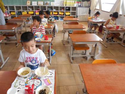 はじめての きゅうしょくに よろこんでいるすがたが たくさんみられました。