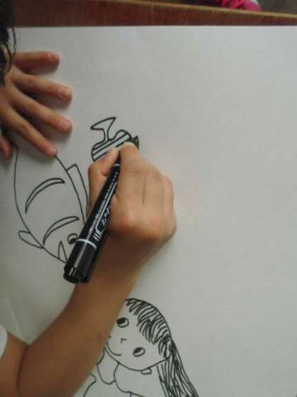 サンゴの海で泳いだら,どんなに気持ちいいだろうと想像して,自分のイメージをふくらませながら描きました。