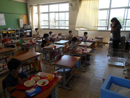 今週から給食が始まっています。これまで通りみんなで机を囲んでおしゃべりはできませんが,やはりお友だちと一緒にいただく給食は,おいしいですね!