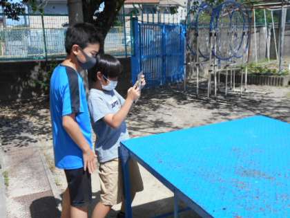 6年間過ごしてきた川岡小学校を,どのように切り取って絵にするのか,構図を考えながら写真を撮っていきました。
