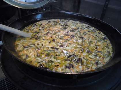 夏野菜のあんかけごはんには,今が旬の「なす」と「万願寺とうがらし」が入っていました。だしのうま味としょうがの香りでごはんが進む献立でした。