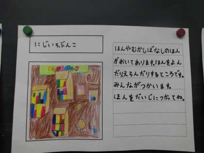 1年生のために教室や特別教室などの紹介カードを書きました。インタビューをして情報を集めてカードに書くことができました。