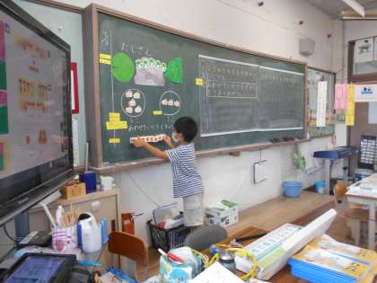 さんすうの「たしざん」のがくしゅうでは,「しき」や「たしざん」ということばをならいました。