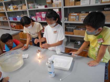 空気中に存在する3つの気体(酸素,二酸化炭素,窒素)にものを燃やす働きがあるのかについて実験を通して調べました。