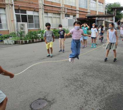 中間休みに,雨が上がりました!やったぁ!中庭で友達と一緒に大繩を楽しんだ後,にこにこ顔で「あ〜,気持ちよかった。」と話してくれました。短い時間でも一緒に遊べるとうれしいですね。