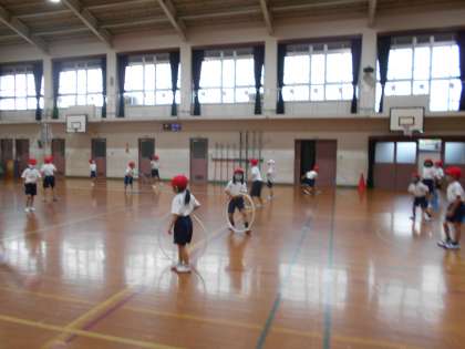 きょうは,フラフープを まわしたり ころがしたり しました。