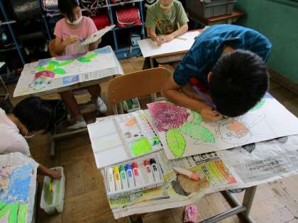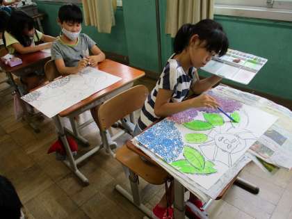 あじさいの花の色をつくり工夫しながら彩色しました。