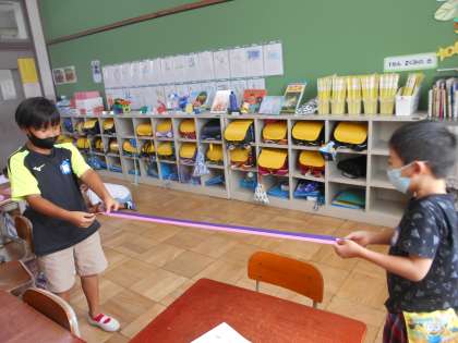 きょうから,「おおきさくらべ」のがくしゅうがはじまりました。
