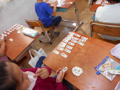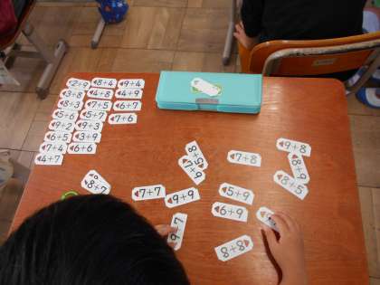 こたえが11になるカード,12になるカードとじゅんばんに ならべていきました。