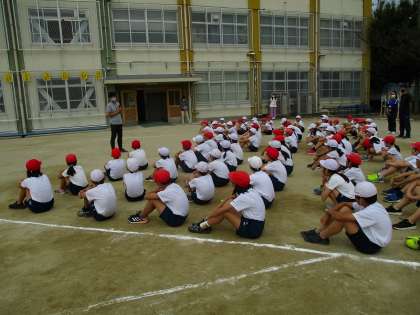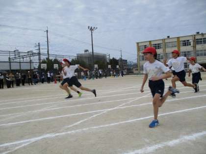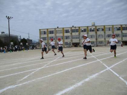 開会式では校長先生から励ましのメッセージをいただき,50m走では一生懸命走り切ることができました。