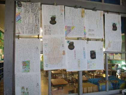 総合的な学習で調べた万願寺とうがらし・賀茂茄子・鹿ケ谷かぼちゃについて調べたことを新聞にまとめました。友達の新聞を読んで,書き方の工夫も見つけました。今は,近畿二府四県の野菜や果物についてグループで調べています。