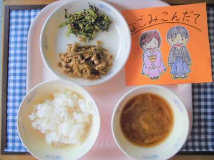 「ごぼうはどこ…?」「あ!これか!」と,とりめしの具に入ったごぼうをしっかり味わって食べる姿も見られました。
