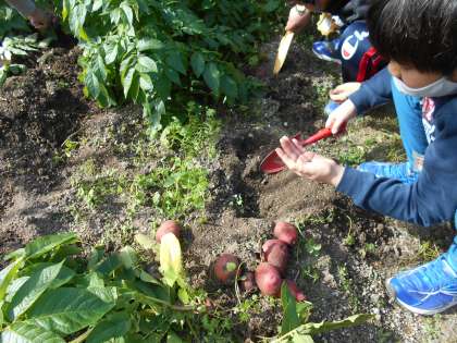 たんぽぽ畑で育てていたジャガイモがたくさん実りました。子どもたちも大喜びです。