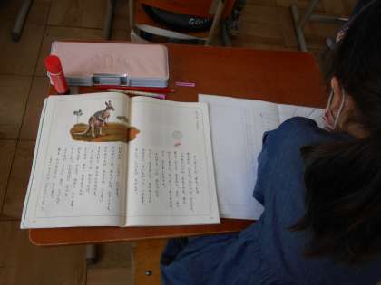 きょうは,カンガルーの赤ちゃんが大きくなっていくようすを きょうかしょから よみとりました。