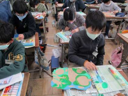 図工「糸のこスイスイ」という学習では,木を電動糸のこぎりで切り形を工夫したホワイトボードを作成中です。完成までもう少し!仕上がりが楽しみです。