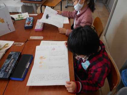 ともだちが かいたどうぶつずかんの こうりゅうをしました。
