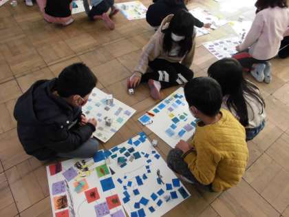 図画工作科で「わくわくすごろく」をつくりました。スタートからゴールまでのストーリーを考えて工夫していました。「もう一回サイコロをふる」や「ワープする」など,ゴールにどんどん駒が進められるように考えてつくっていました。