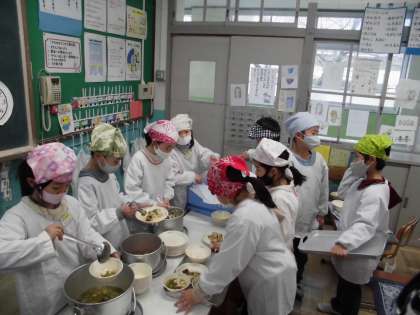 2年 給食当番 上手にできるよ
