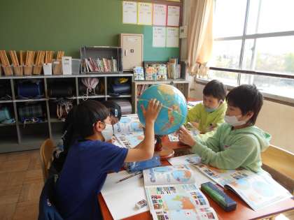 いよいよ5年生の学習のスタートです!今日は,地球儀を見て,特徴や地図とのちがいを見つけました。
