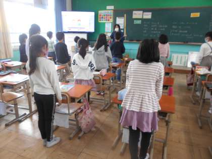 3年生になって初めて外国語活動の授業を行いました。