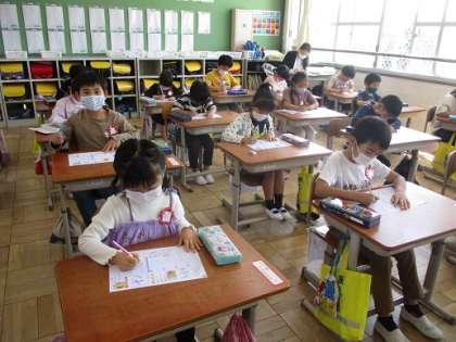 1年 「ぐう,ぺた,ぴん」 よい姿勢でひらがなをかいたよ