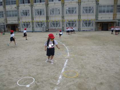 リズムよく跳べている友達や一歩を大きく踏み出している友達の良さを見て,