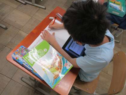 動画で線分図のかき方を見ながら,自分のノートに線分図をかきました。