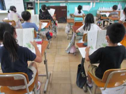 2年生は毎日宿題で音読をしているので,音読がとても上手です。声の大きさ,「,」や「。」に気をつけて,また気持ちをこめて読む事が出来るようになりました。