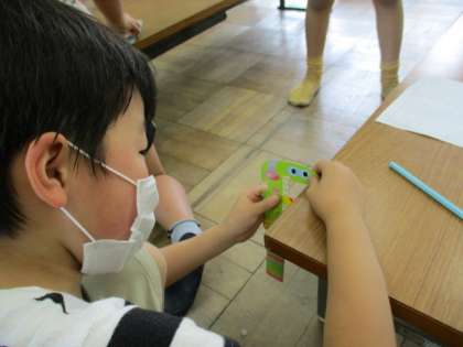 算数の「長さ」の単元で,いろいろなものの長さを予想してから測ることをしました。「鉛筆はだいたい10cmかな。」,「この手すりは5cmぐらいかな。」など,自分で予想をしてから測りました。便利なものさしを使うと丸いものも図ることもできたのでより多くのものを測ることができました。1cmや10cm,20cmなどの長さの感覚を少しずつ分かるようになってきました。