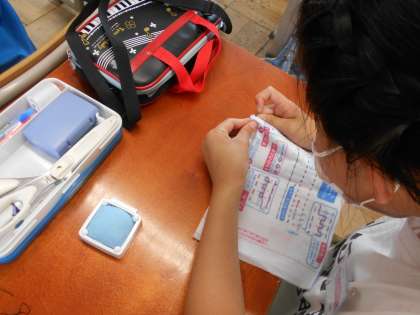 初めは難しそうにしていた玉結び,玉どめもだんだん上手になってきて,スイスイ縫い進めていく姿が見られました。