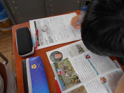 教科書や資料集,ノートを見返しながら集中して考えていました。