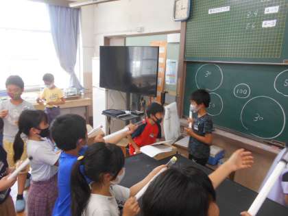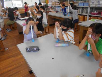 理科の「とじこめた空気」の学習をしている4年生の児童。「空気って,縮むよ。」や「空気って押し返すのかな!?」といった予想を口々にしながら,実験を楽しむ様子が見られました。「押せば押すほど手ごたえが強くなるのはどうして!?」身近にある空気の不思議を学習していくのが楽しみですね。