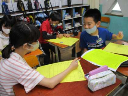 来週にあるたてわり結成式の準備中です。いよいよたてわり活動がはじまるんだと胸が高まりますね。