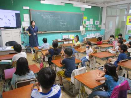 2回目の英語活動の授業がありました。今日は先週の復習した後,音楽に合わせながら英語でのあいさつの仕方を学びました。テレビを見ながら振付けも覚えて友達と練習することができました。