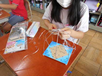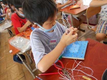 ワイヤーアートが完成間近です。みんな,想像力を働かせて,どうすれば作りたい形になるかな,これは何の形に見えるかなと考えながら,作業していました。