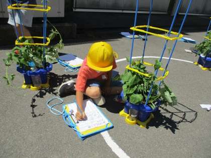 大切に育てているアサガオをよく観察しました。