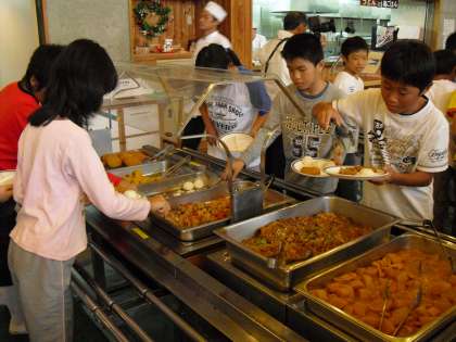 その後,食堂で昼食。カレーライスか牛丼の選択で迷いながら選んでいました。もちろんバイキング付きです。