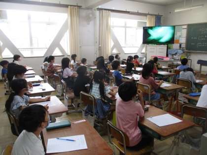 学校にいる金魚やこい,うさぎについて観察する中で,