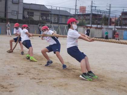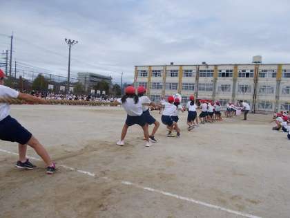 クラスで綱を引くコツを調べ,作戦を立てるなど工夫して臨んだ,クラス対抗の綱引きでした!よくがんばりました!