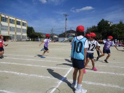 スピードを落とさずにバトンパスをする方法をチームで考えながら練習してきたリレー。本番も,チームで協力してバトンをつなぐ姿に感動しました。