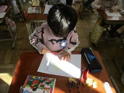教室でこすりだしをしました。